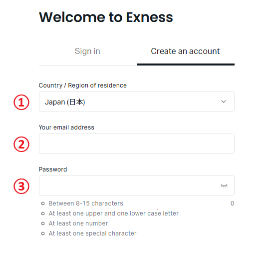 居住国に応じたExnessの公式サイトから口座を開設するようにしましょう。