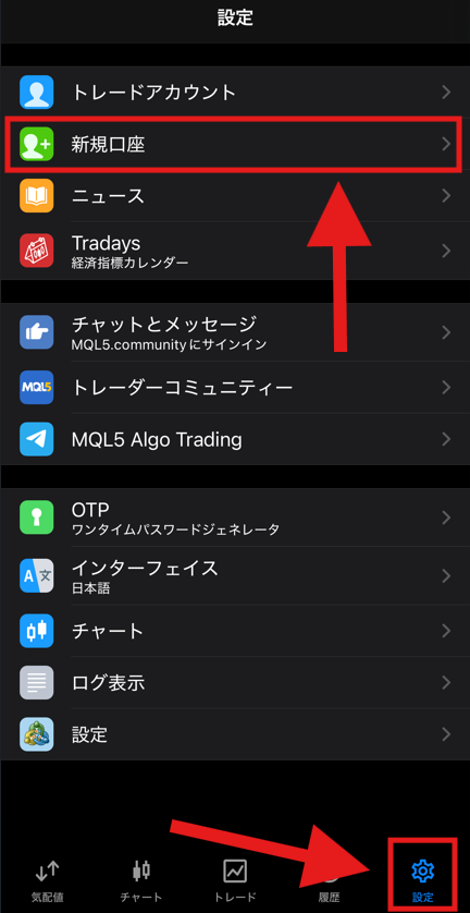 サーバー選択後に、ログイン名とパスワードを入力して口座の登録は完了です。